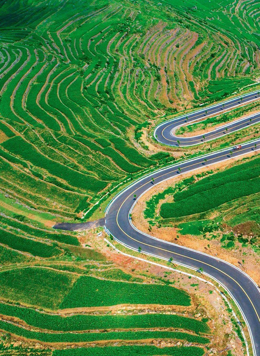 公路串联官庄、辉渠、郚山等五镇,沿途梯田错落、群山连绵、风车摇曳、古村点缀,四季皆景——春赏齐鲁桃海如云似霞,夏观万顷梯田绿意盎然,秋览层林尽染硕果飘香,冬望雪落沟壑山舞银蛇。